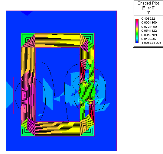 在罩極電機中,轉子被放置在一個簡單的c型芯中,每根磁極的一半被一個罩極線圈覆蓋,當交流電流通過供電線圈時,會產生脈動磁通。當通過遮光線圈的磁通量變化時,罩極線圈中會感應到電壓和電流,從而與來自電源線圈的磁通量變化相對應。因此,罩極線圈下的磁通量滯后于線圈其余部分的磁通量。通過轉子在磁通中產生一個小的旋轉,從而使轉子旋轉,下圖為在用有限元分析得到的磁通線。